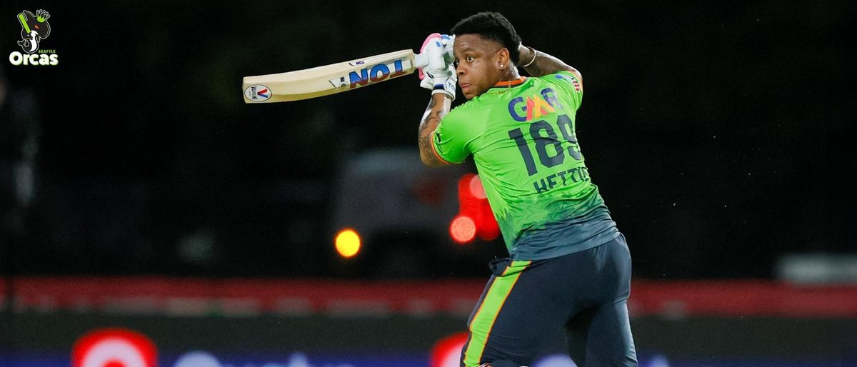 In reply, the Seattle Orcas got off to a shaky start, slipping to 31/2 in the powerplay with early dismissals of Steven Taylor and Kyle Mayers. Shayan Jahangir held things together at one end briefly with a 27-ball 36, but the ninth over saw twin setbacks: Jahangir’s dismissal and Raza’s unfortunate run-out at the bowler’s end, leaving Seattle reeling at 56/4.